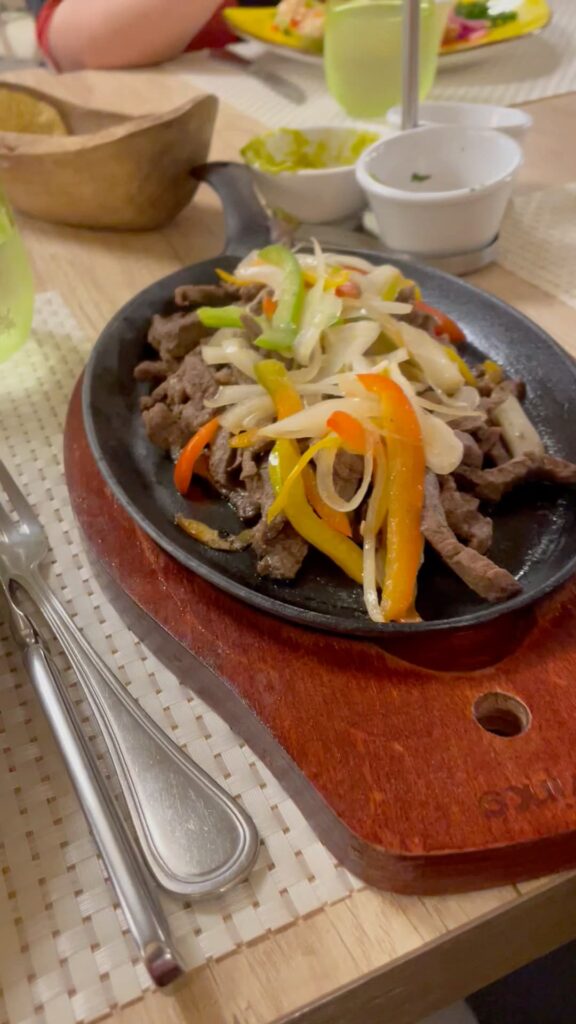 We had dinner at the Seaside Grill one evening, and it quickly became one of our favorite meals at Dreams Flora. Located right by the beach, the setting was absolutely beautiful. Think palm trees swaying, the sound of waves in the background, and soft lighting. The dinner menu featured a variety of grilled meats and seafood, and everything was full of flavour. We ordered steak and chicken. You better come hungry because the portions are huge! The atmosphere was relaxed but elegant, making it the perfect spot for dinner with ocean views.